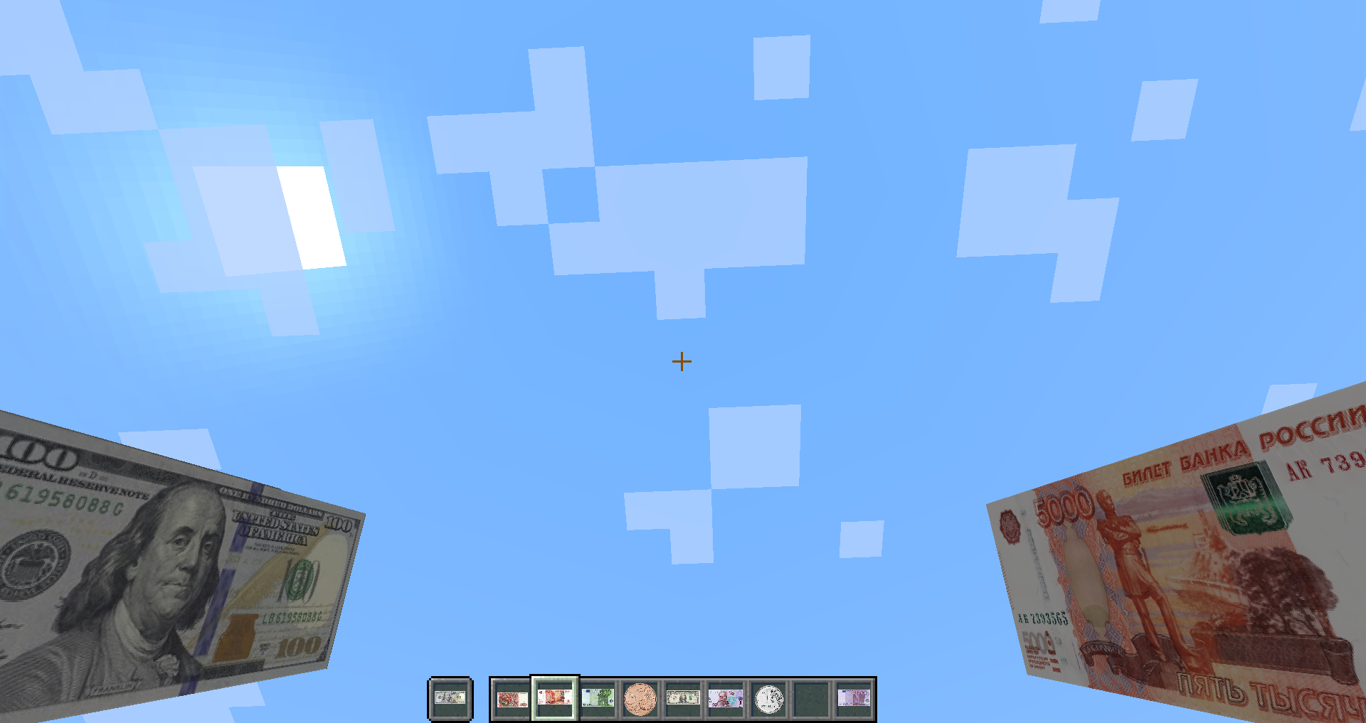 The "World of money" mod adds realistic money and coins to Minecraft, inspired by the currencies of various countries, including Ukraine, Russia, Belarus, Europe (euro), the United States (dollars), and historical coins from the Soviet Union. This mod works seamlessly with Custom NPCs, allowing you to create trading systems, role-playing scenarios, and economic interactions for your in-game "countries." It enhances the gameplay by adding realistic economic elements suitable for both single-player and multiplayer servers with role-playing elements.